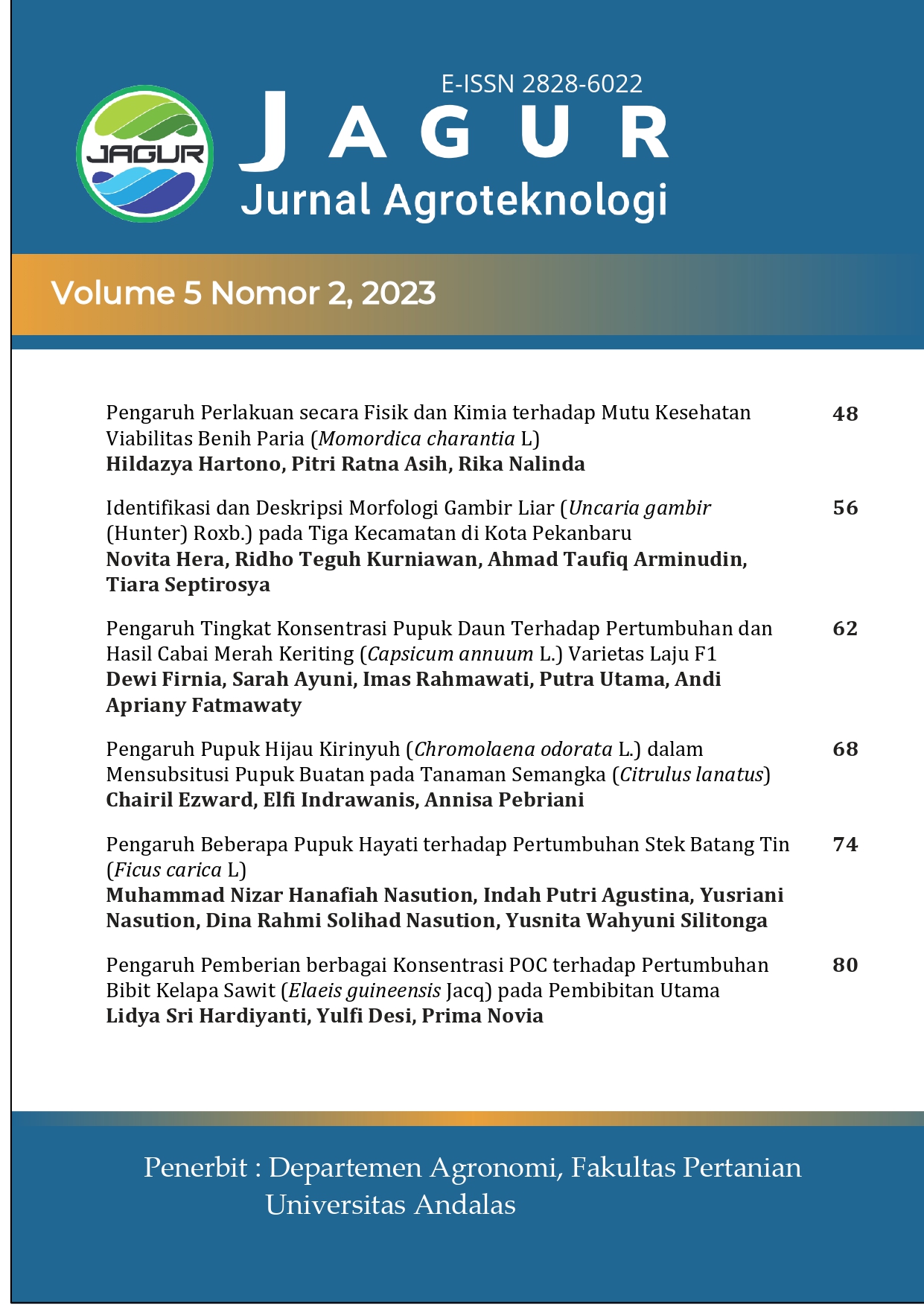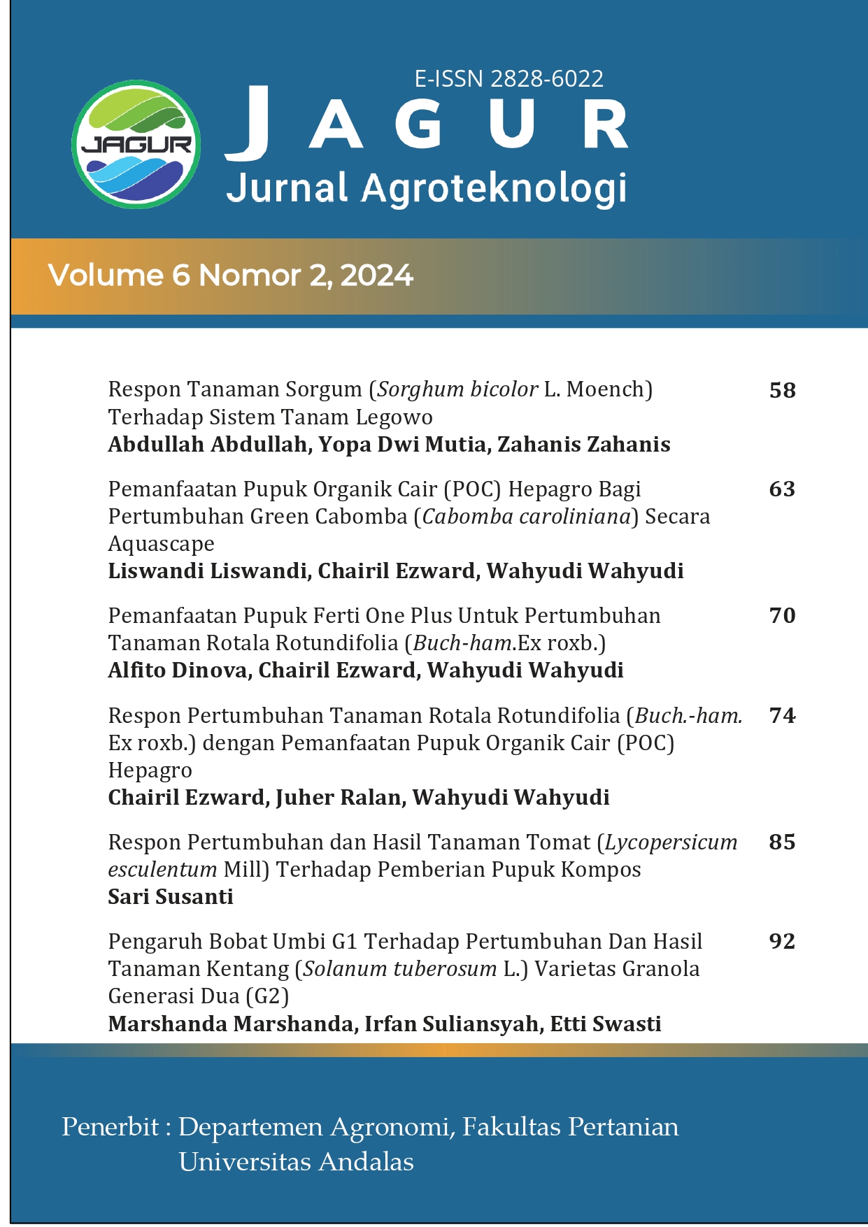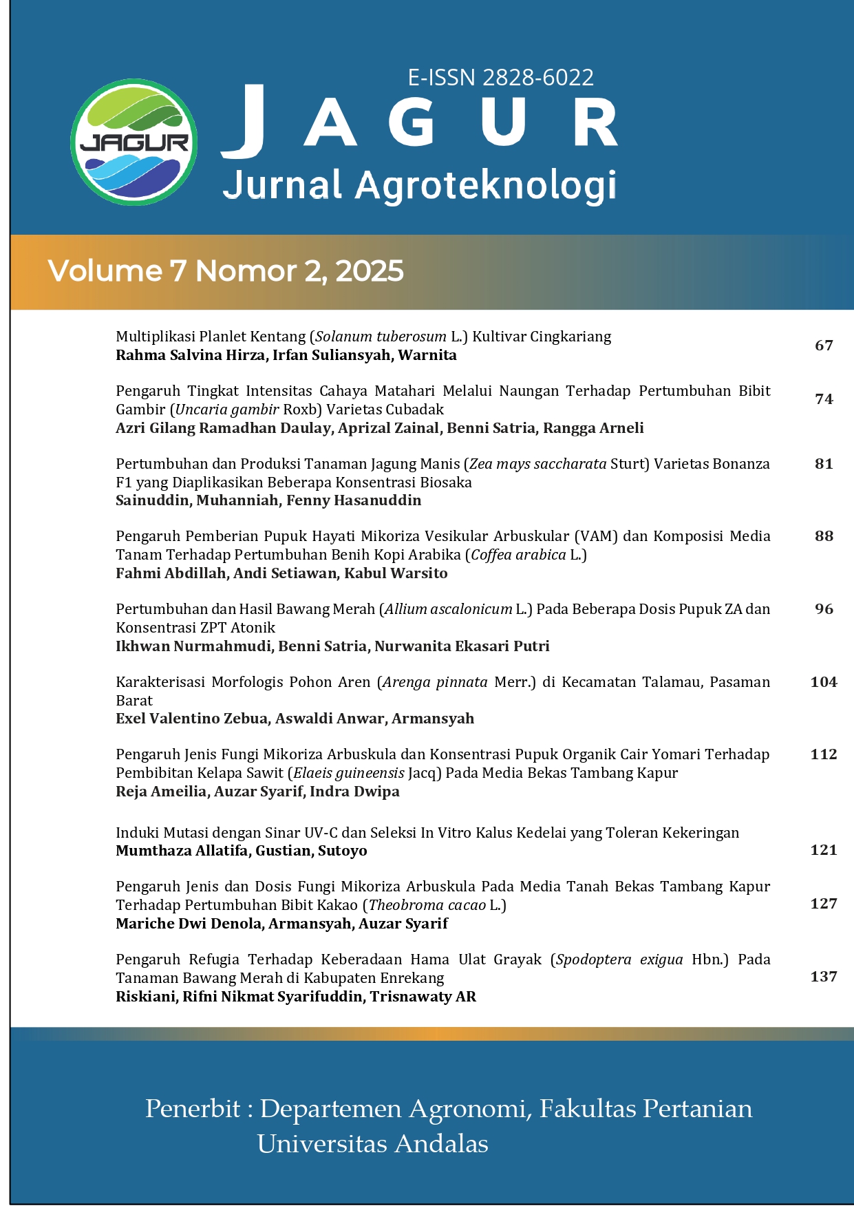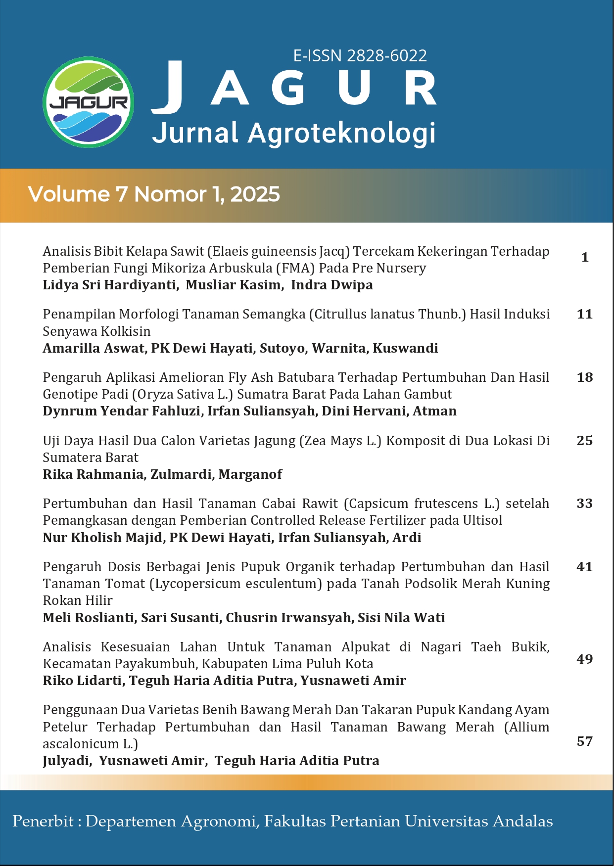 Publisher : Department of Agronomy, Faculty of Agriculture, Universitas Andalas, Indonesia